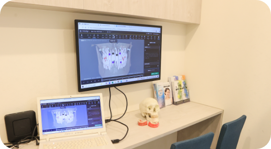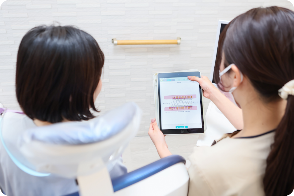 治療前に院内LANの整備により、アニメーションにて診療内容を分かりやすく説明。治療前の不安を解決し治療に取り組んでいただけます。