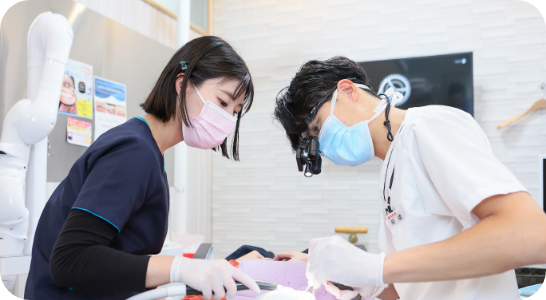 毎週1回の院内勉強会、院外研修への積極的参加など院内研修システムを構築。また、ドクターも矯正・外科・小児・インプラントまで専門に分けて対応させていただきます。