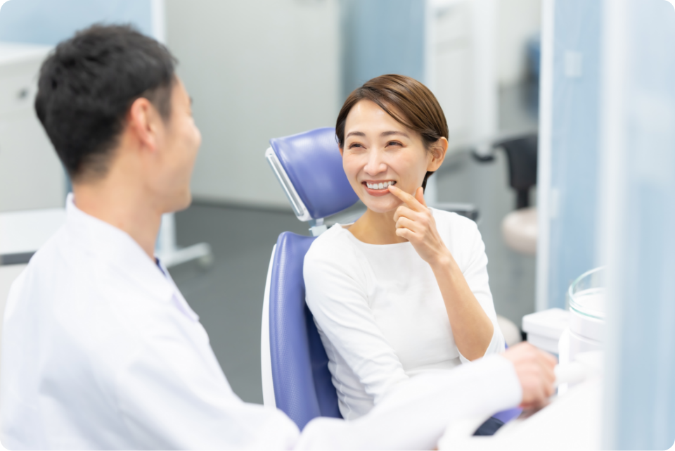 お口の状態や歯ぐきの炎症レベルをチェックし、治療の必要性や流れをご説明します。痛みの有無や気になる症状もここで丁寧にお伺いします。